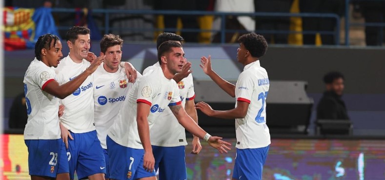 El conjunto azulgrana cumplió con el pronóstico y se impuso a Osasuna con un gol del polaco y otro del canterano en el descuento y el domingo buscará su segunda Supercopa consecutiva ante el Real Madrid en Riad.